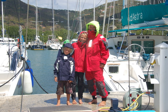 Da er vi klare for havseilas og venter kun på godt vær. Vi har vært på Peters Island og Norman Island hvor vi har snorklet og blitt kjent med en stor Baracuda som passet godt på båtene våre (Saga Tiba, Emblem, Barolo og Amor Fati). Den lå stort sett i skyggen under båten og lurte. Gabriel og John fikk sett den på nært hold da de var en liten snorkletur og kom seg fort tilbake til båten:) På Norman Island spiste vi voksne middag med Emblem og Saga Tiba og Morten (Saga Tiba) serverte hjemmelaget pizza til alle barna. Vi store gutta fikk også med oss ett dykk på The Indians. Dessverre var det litt dårlig sikt men gøy likevel. Vi har ligget to dager i marina Village Cay, Tortola og gjort unna de siste «greiene» med båten og handlet mat så det holder til Oslo…Vi nyter de siste dagene i Karibien og drar idag mest sannsynlig tilbake til Norman Island for å bade og sole oss de siste dagene før vi reiser nordover til Bermuda. Planen er å reise søndag men det er avhengig av været. Vi har kjøpt værtjenester av Frivind som vil oppdatere oss underveis på havet så vi venter på en melding idag for å bestemme når vi drar….