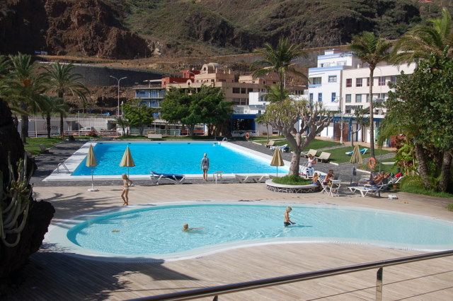 Etter en seilas på ca 7 timer med bra med vind og bølger ankom vi La Gomera. Velkomstkomiteen var Emblem og Mango og vi fikk ikke mer en fortøyd før ankerdrammen skulle inntas. Det ble en av de lengre ankerdrammene vi har hatt. Det var dog veldig deilig å få en plass uten å gynge hele natten. Søndagen ble benyttet til å ta igjen det tapte når det gjelder «husarbeid» både innvendig og utvendig. Det var dessuten på tide for skippern å ta en hårklipp som ble utført av fruen på en av nabo båtene.
