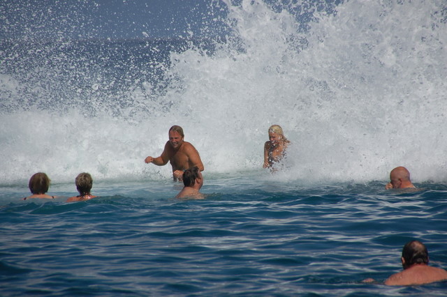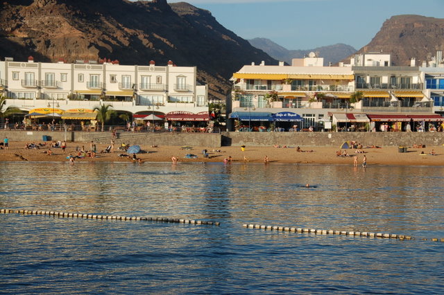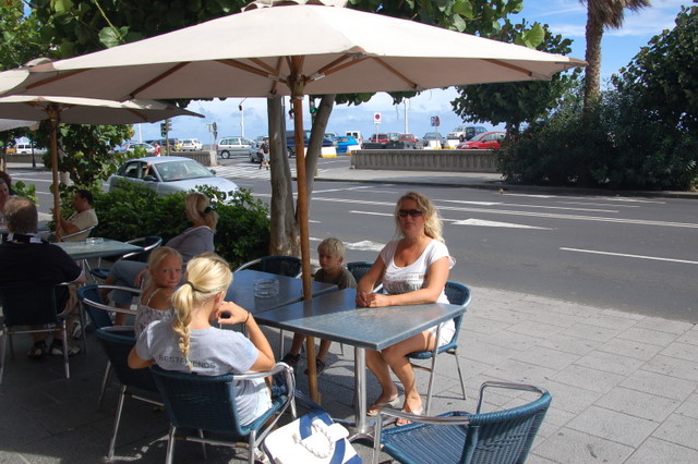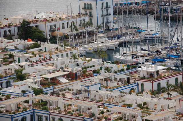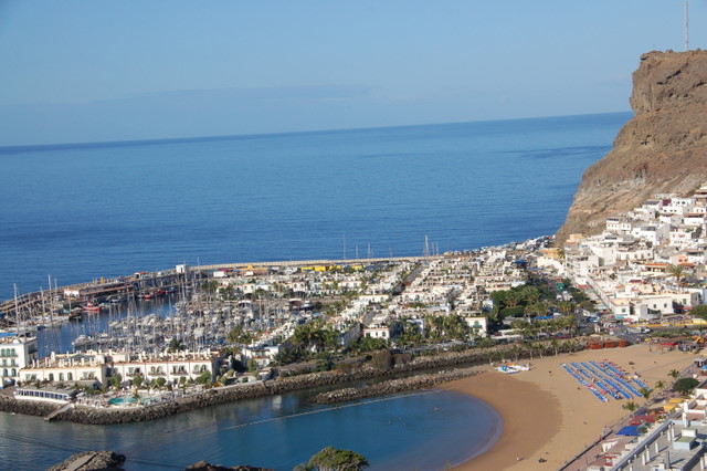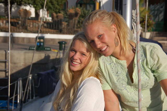 Avreisen fra La Gomera startet i mørket og så fort vi kom på utsiden av moloen raste vinden opp i 12 sm. Vel i le av Tenerife ble det nærmest vindstille og motoren måtte startes. Vi hadde en flott utsikt mot El Teide som strekker seg 3717m over havet. Etter en stund dukket det opp ett par hvalfamilier mest sannsynnelig knølhval (noe større enn de største delfinene vi har sett). På østsiden av Tenerife tok vinden tak i gjen. Skyldes at det rundt Kanariøyene er såkalte akselerasjonsoner hvor vinden øker som følge av at øyene presser vinden sammen. Detviste seg at akselerasjons sonen denne gang fulgte oss på hele stekket mellom Tenerife og Gran Canaria, på det meste logget vi 19,6 sm (ca 39,2 knop) – da blåser det bra! Rett før PdM løyet vinden helt og vi måtte motre inn. PdM er et koselig sted selv om turismen er stor. Fredag var det Halloween som ble feiret på tradisjonelt vis men med den forskjell at de lokale ba om penger istedenfor gotteri. Det er ingen båtbutikk her i PdM så Frode(Mango) og jeg måtte leie oss bil og dra opp til Las Palmas for å gjøre innkjøp og fikk nesten alt på listen og benyttet dette som ett skalkeskjul overfor Henriette om at jeg også dagen etter måtte en tur for å få tak i deler. Det jeg egentlig gjorte var å hente Frida og Marte på flyplassen, de skal være hos oss i 1 uke. Dette kom fullstendig overraskende på Henriette og gleden var stor!!! Ellers går dagene med til å slappe av på stranden med ett bad i ny og ne, helt herlig å bare ta det med ro. Gabriel og AC har i dag vært på en lite tur opp de 226 trinnene for å se utover havnen. Vi har plass i havnen frem til onsdag og da seiler vi mest sannsynnelig til Puerto Rico som ligger litt lenger øst så bare følg med.