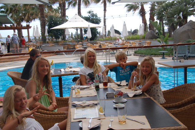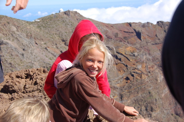 Vi har stort sett brukt dagene her ved svømmebassenget og slappet godt av. Tirsdag leide vi bil og hadde en opplevelsesrik tur rundt på øya sammen med både Emblem og Mango. Vi kjørte opp fjellene til verdens største vulkankrater og der var det ganske så høyt og langt ned. Barna jublet og beveget seg så langt ut mot kanten av stupet som mulig mens mor holdt seg litt i bakgrunn med nerver i spenn – veeldig langt ned. Etter dette bar det opp til den høyeste toppen – Roque de los Muchachos – 2426 moh med fantastisk utsikt til Tenerife og El Teide. Det var også spennende å se Astrophysics Observatory, som på grunn av den ekstraordinære klare luften på øya har blitt et idellt sted for astrofysikere verden over. Vi støtter Emblem på Star War følelsen. Øya er kallenavnet sitt verdig «the pretty island»; subtropisk klima, svarte sandstrender, høye fjell og vulkankrater.