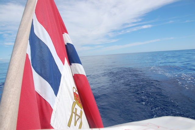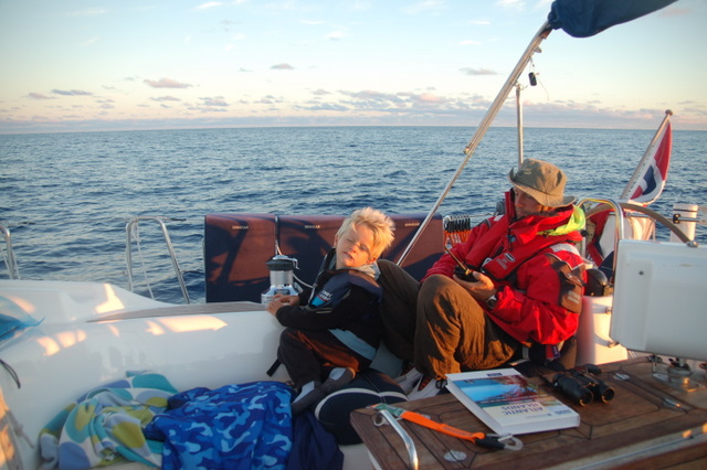 Vi oppdaterer, som tidligere sagt, via satellittelefonen så det er fullt mulig å følge oss på turen. Vi seiler sammen med den danske båten Barolo (www.sy-barolo.dk) og prøver å holde en avstand som gjør at vi kan ha kontakt på VHF’en -det vil si ikke mer enn 50 nm unna.