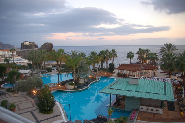 Den første dagen her på Maderia ble vi invitert til Royal Savoy(RS) og familien Eikrem Eidskrem. RS er ett veldig flott leilighetskompleks med saltvannsbassenger og tilgang til sjøen. Vi koste oss med lukus tilværelsen og meget hyggelig selskap og da vi attpåtil ble påspandert lunsj var dagen fullkommen. En stor takk til Sigrid og Oddvar for deres gjestfrihet.