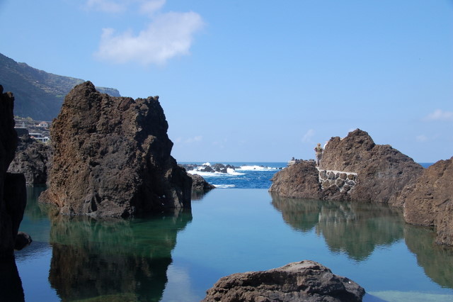Madeira er en fantrastisk grønn, subtropisk øy som stiger opp av havet med høyeste punkt på over 1800meter. Vi har tatt taubane opp i fjellet med nydelig utsikt og ren frisk luft. Det ble dessverre ikke noe av sledeturen da vi hadde tur retur billett på taubanen……………..hahaha. Vi har også leid bil og tatt for oss den vestlige delen av øya. Fantastisk veianlegg med mange tunneler. Vi reiste til Porto Moniz hvor vi badet i ett badeanlegg helt ut mot Atlanterhavet og hvor bølgene skylte inn over anlegget. Vi stor koste oss, Andrea fant sågar en stor blekksprut i ett tilstøtende anlegg.’