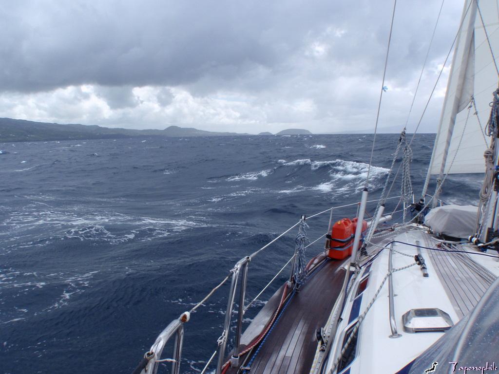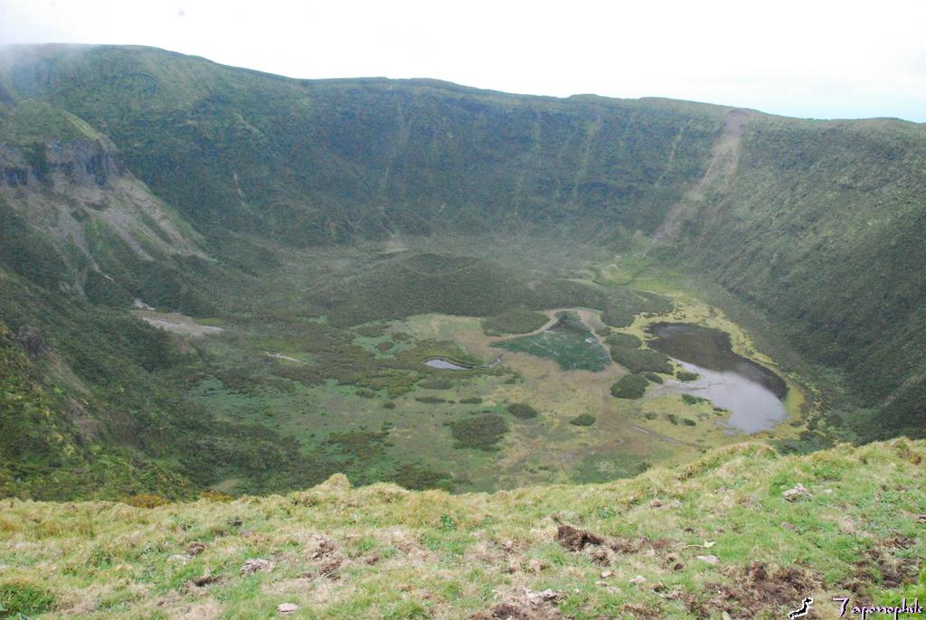 Disse øyene ligger midt ute i havet, det er 1200 nm til Irland (ca. 10 ganger Oslo-Skagen). Vi var ganske ustøe til bens da vi forsiktig beveget oss bortover brygga for å sjekke inn. Det var utrolig deilig å komme på land. Dagen etter ankomsten til Horta, leide vi bil for å utforske øya. Det er en koselig liten øy, grønn, frodig og velstelt. Hovedattraksjonene er to vulkaner som vi skulle besøke. Vi fikk oss en fin tur langs kanten av krateret i en høyde av 1030 moh.