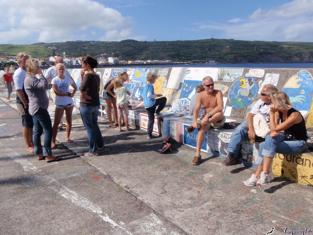 Horta her på Azorene er et samlingssted for alle seilbåtene som krysser Atlantere på vei tilbake til Europa. Det ligger utrolig mange langturseilere her og hviler ut før siste etappe over til fastlandet. Dette gir stedet en egen atmosfære. Alle maler en hilsen på veggen i havnen.