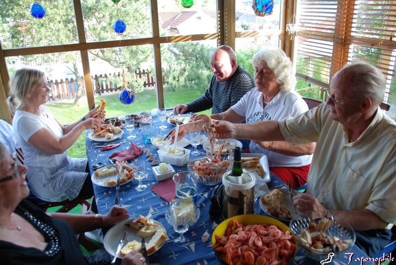 Vi hadde en fin seilas fra Hankø til Grebbestad. Strålende sol og 6-8 m/sek fra s/w. Vi kom til Grebbestad kl.1800. På kaia ble vi møtt av Britt og Erling som er venner av Liv og Knut og bosatt i Grebbestad. Etter parkering ble vi invitert hjem til Britt og Erling som bor i et kjempeflott hus med utsikt over innseilingen. Vi hadde en hyggelig aften med sjømat og mye annet godt. Den hyggelige aftenen topper opplevelsene på turen så langt.