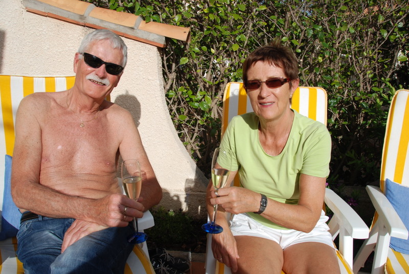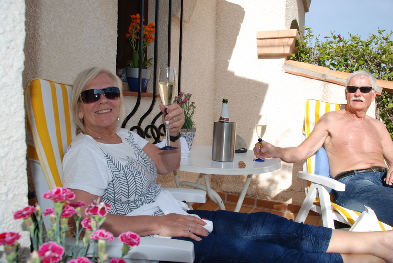 Torunn og jeg ankom båten sent torsdag kveld (21.4.) Etter en god natts søvn møtte vi Margun og John Arild (John Arild er en god kollega av Torunn) til lunch på strandpromenaden i Santa Pola. Etter en hyggelig lunch i sol og varmt vær gikk vi hjem til deres leilighet som ligger nord for Santa Pola. Vi fikk oss en hyggelig trimtur på en time over høydedraget til El Faro. Deretter ble det champagne og omvisning i deres flotte leilighet.