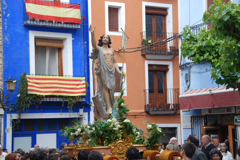 Vi lot oss raskt overtale. Lørdag kveld fortøyde vi i havna i  Villajoyosa. Søndag morgen var det påskeopptog i byen, deretter var vi hjemme hos Astrid i hennes flotte leilighet i ett av de karakterstiske husene med havutsikt. Deretter lunch og ankerdram ombord i GOFFY. En herlig dag sammen med Astrid og Elisabeth.