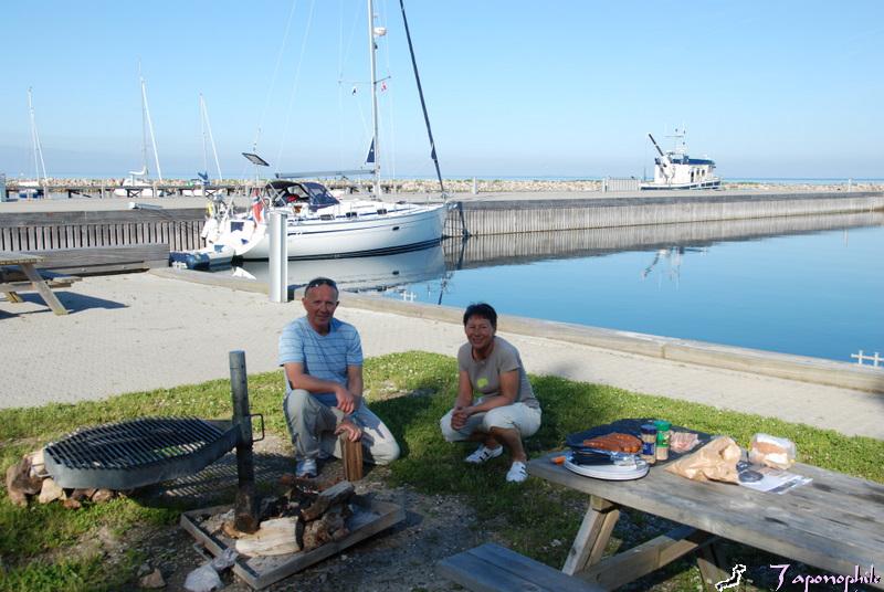 Vejrø er en liten idyllisk øy som ligger nord for Lolland. Motor og seil i strålende vær fra Møens Klint. Stille og rolig og helt blikk. Nesten alene i havna. Grillet ved båten om kvelden: Champagnemarinert patè, grillet hvitløkswûrst, spearibs og salat +++ Etter måltidet syklet vi all fire rundt på øya, klatret opp i fyret og beundret utsikten. Perfekt dag på en perfekt øy.