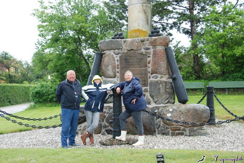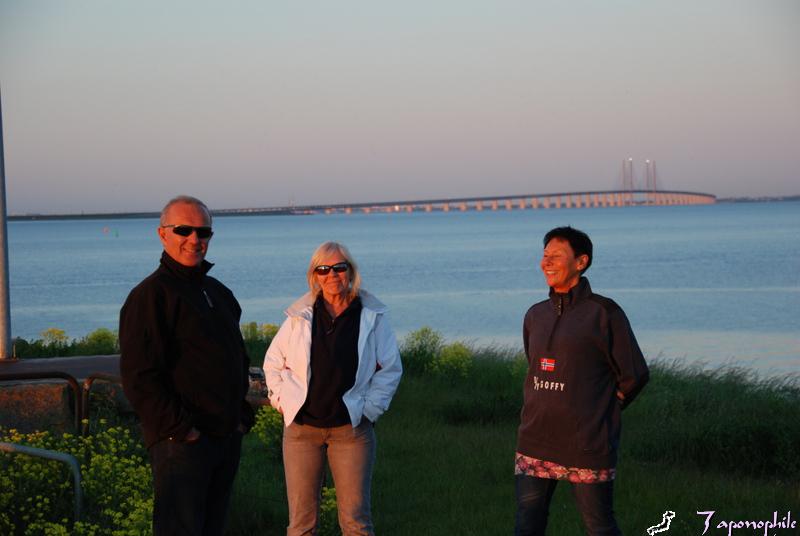 Gudrun, Svein og Torunn på Dragør fort med Øresundbua i bakgrunnen.