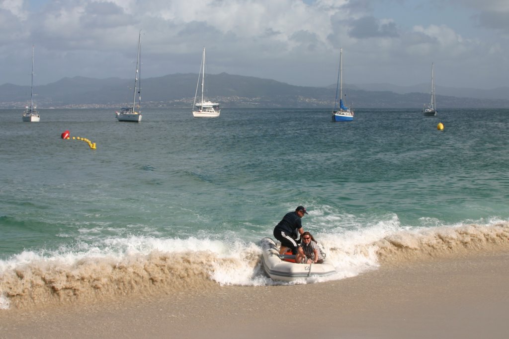 Bilder fra samlingen på stranden samt actionen da vi forsøker å komme oss hel og tørr gjennom dønningene og opp på stranda med dingyen finner dere på www.seiltur.no under Tempest sine sider. Her i Bayona har vi vasket klær og bunkret mat og diesel og er nå klare for videre ferd sørover. Dette blir siste havnen i Spania og nå tenker vi å ta et par litt lenger seilaser slik at vi får litt færre stopp på Portugal-kysten. Vi må komme oss ned til Lagos og se om vi kan få båten opp på land sånn at vi kan bli ferdige med det og da ta det litt mer med ro. Vi har fortsatt ikke noen spesielt høye temperaturer, godt og varm i solen, men kaldt i vinden så vi reiser fortsatt mot sør i håp om å finne den etterlengtede sommeren.