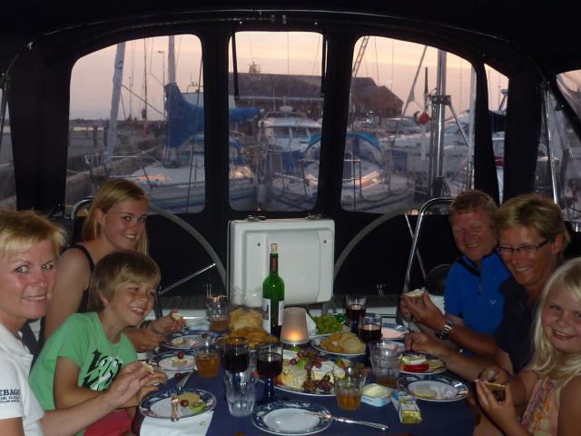 Etter litt «shopping» og nødvendige ting var handlet inn avsluttet vi dagen med ost og vin aften ombord. Mandag regner vi med å få resten av utstyrer ombord slik at vi kommer videre mot Anholt.