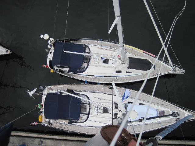 Etter det var gjennomført, var det å løpe en tur opp i riggen, slik at vi fikk montert den nye navigasjonslysene i toppen av masten, selvfølgelig med led pærer. Da er det fint å ha montert trinn i masten, det gjør det lett å komme opp, men det tar litt tid når en bare en hånd å jobbe med, den andre bør fortrinnsvis brukes til å klamre seg fast med. Det mest fanastiske var at alt virket, etter noen små justeringer.