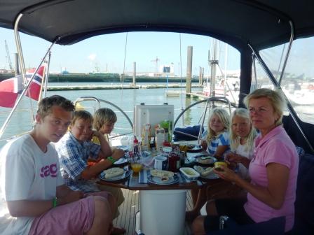 Barna fant hverandre, så vi endte opp med at vi hadde fem barn, som overnattet hos oss. Det var veldig trivelig for alle parter. Da vi  i morges gikk innom havnekontoret for å betale, ble vi møtt av et service vennlig personale som snakket godt engelsk.