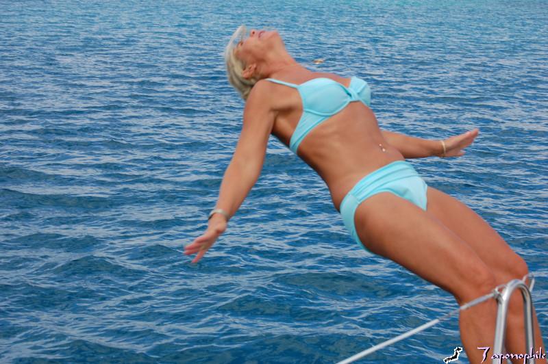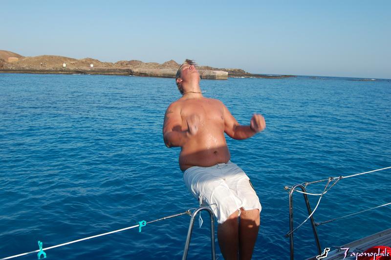 Moro å leke seg litt om bord. Tone og Magnus er gode stupere 🙂